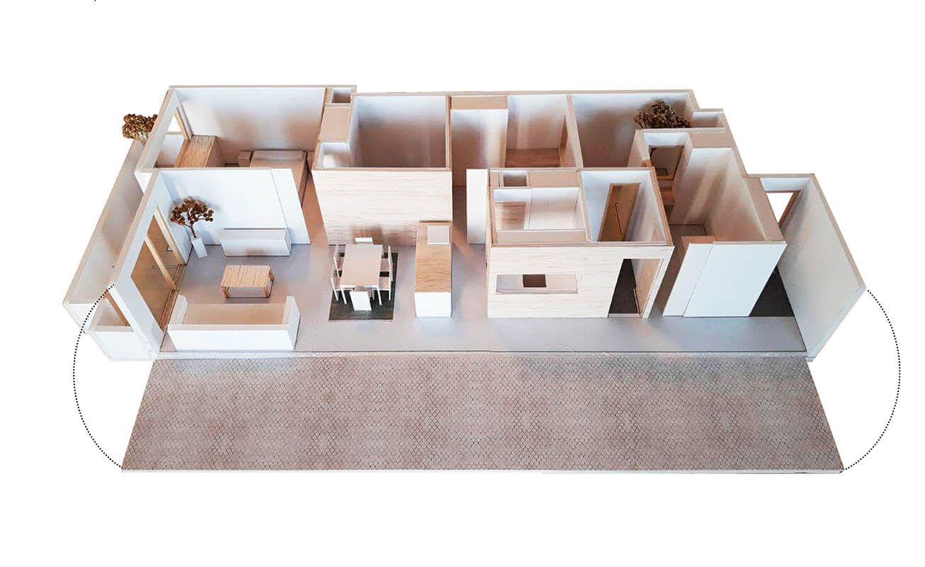 En lugar de dividir todo con tabiques, un enfoque matrioshka organiza el espacio en capas: nucleo tecnico, zona flexible y envolvente de almacenamiento. Asi se conserva continuidad visual y se gana versatilidad.